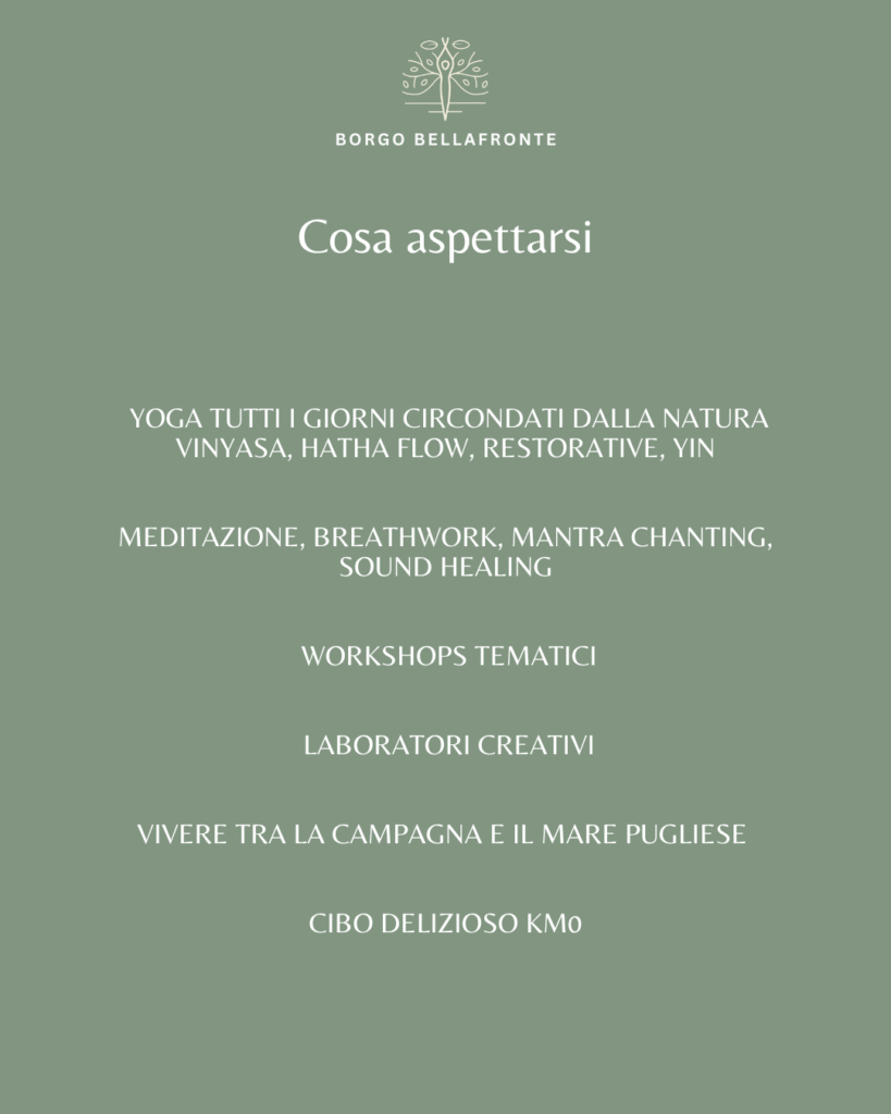 - Lezioni di Yoga — mattina e sera! Vinyasa, Hatha Flow, Yoga ristorativo e Yin Yoga per bilanciare l’energia e nutrire la morbidezza!